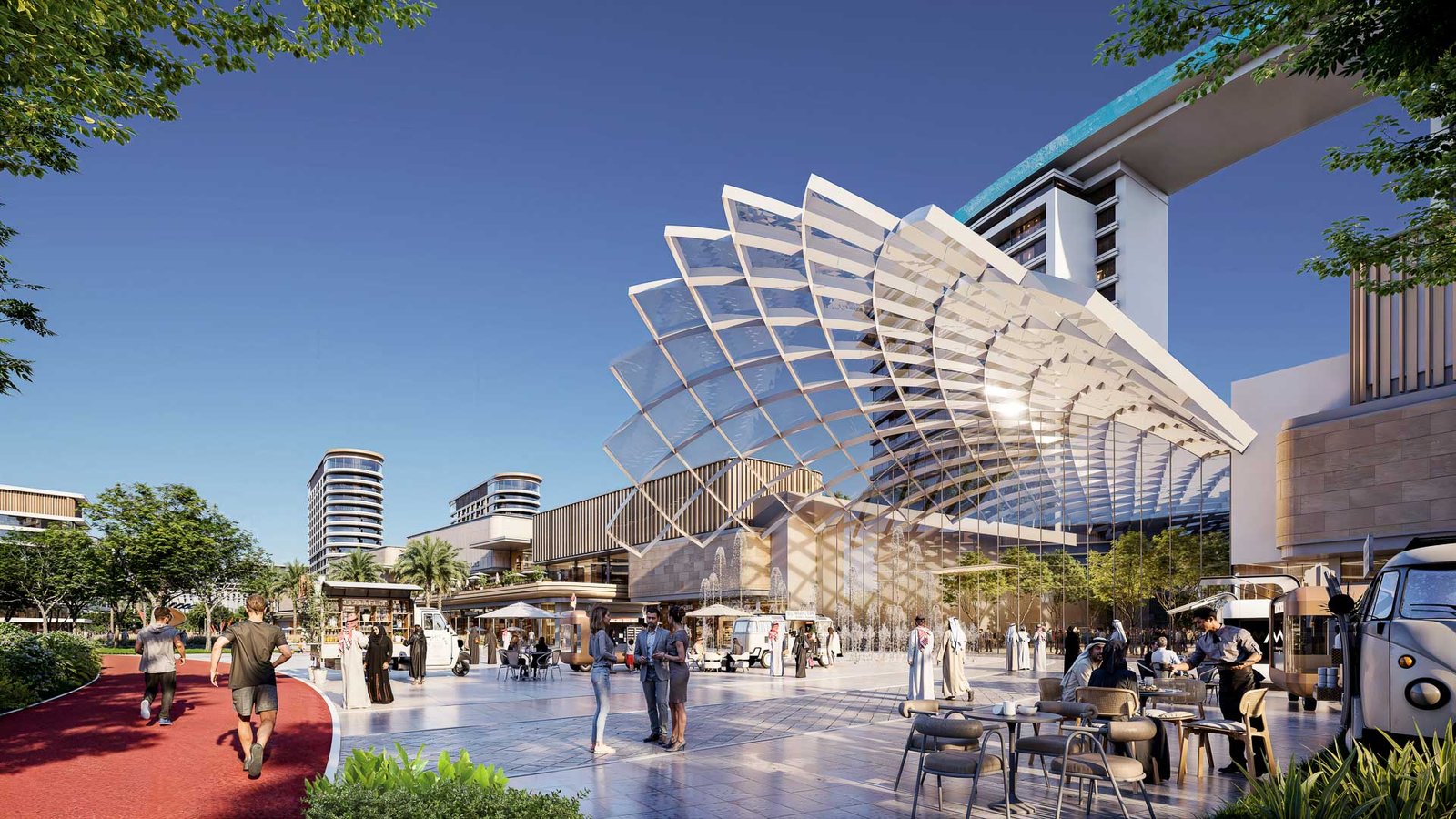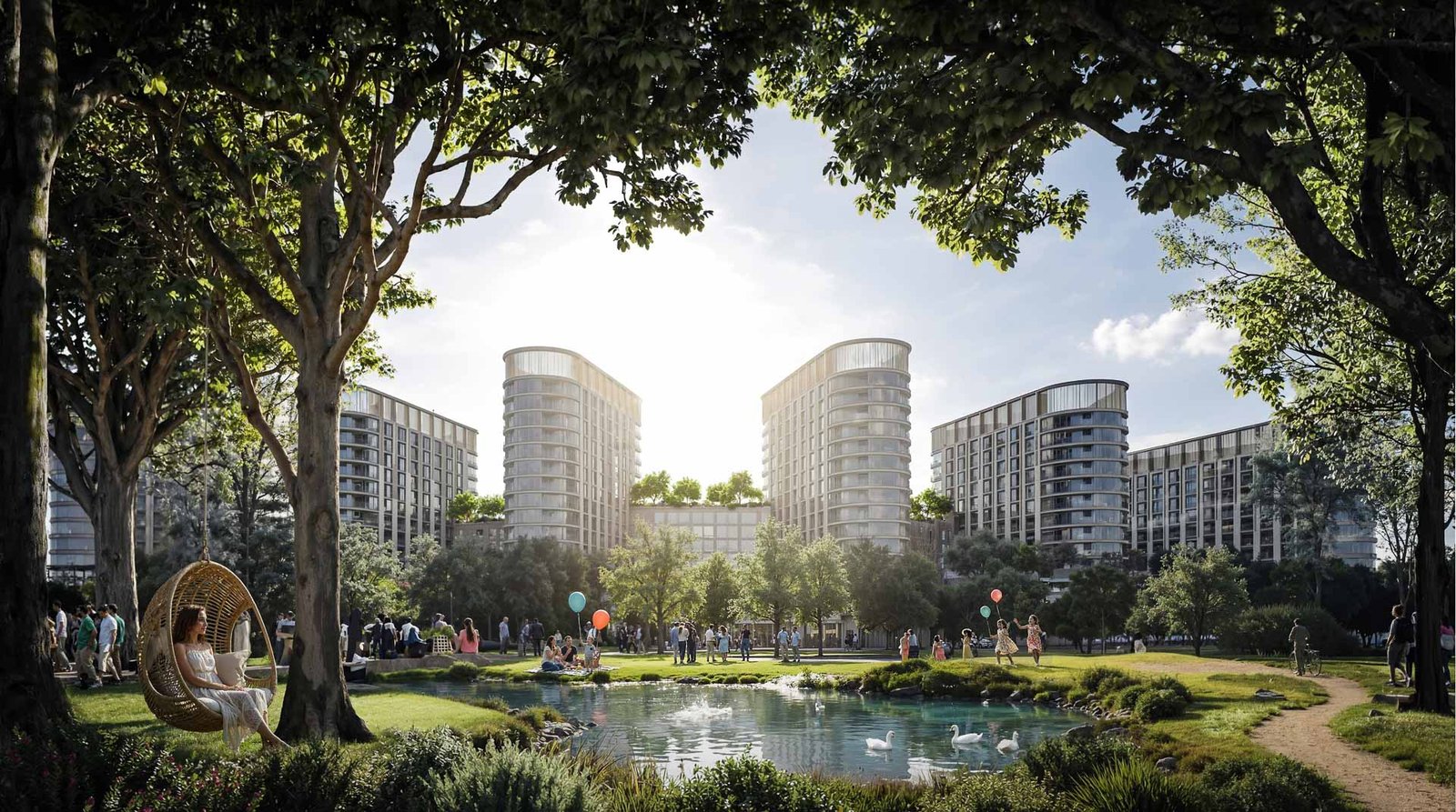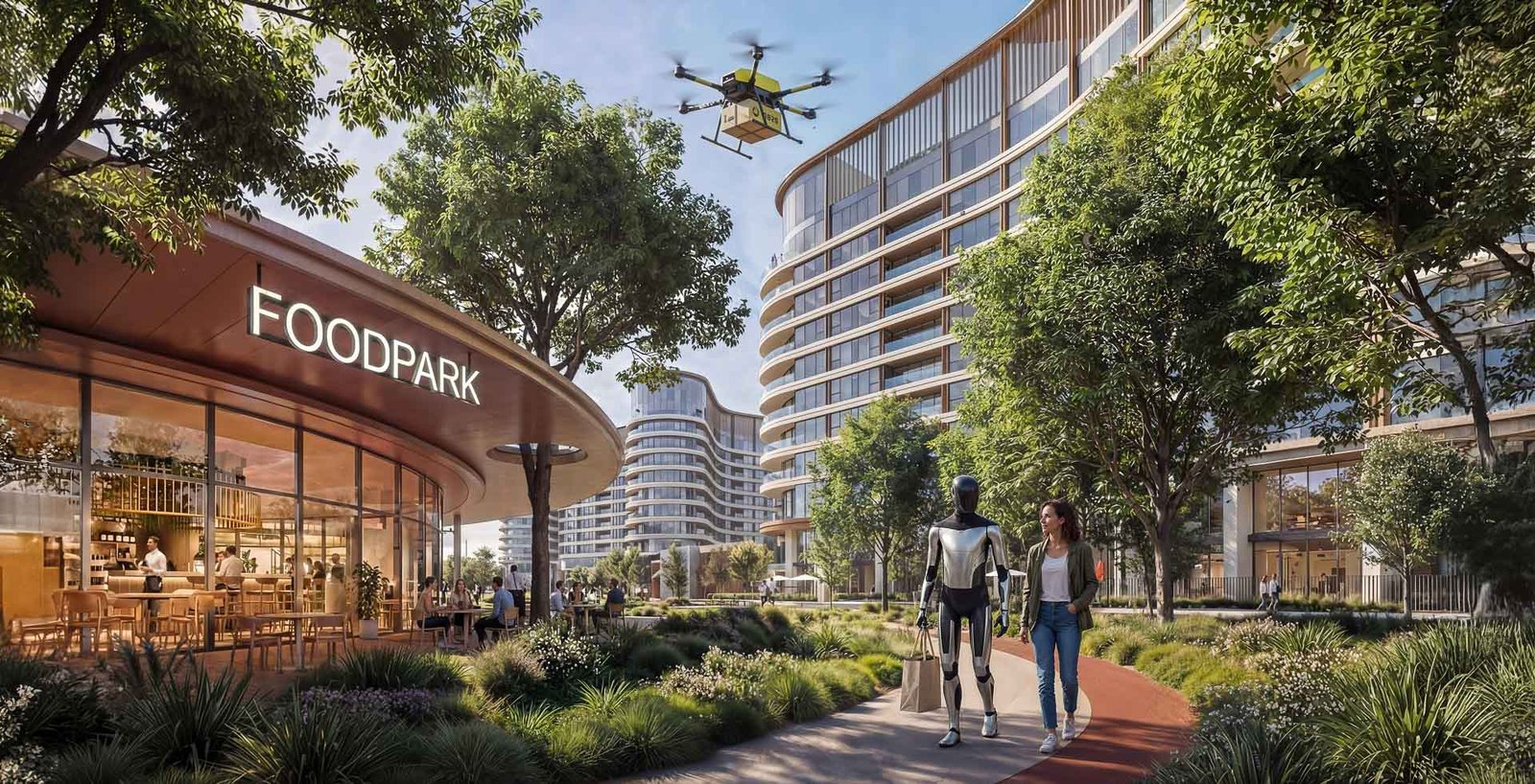 Forest-inspired villa neighbourhoods and contemporary residences are arranged around a vast central park and a continuous green spine, alongside a community mall, wellness centre, schools, healthcare facilities, and curated lifestyle amenities, creating a setting where wellbeing and modern living come together naturally.